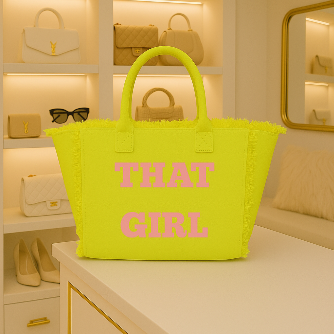 The Statement Canvas Tote – "That Girl " (Yellow-Wording Color Customizable)